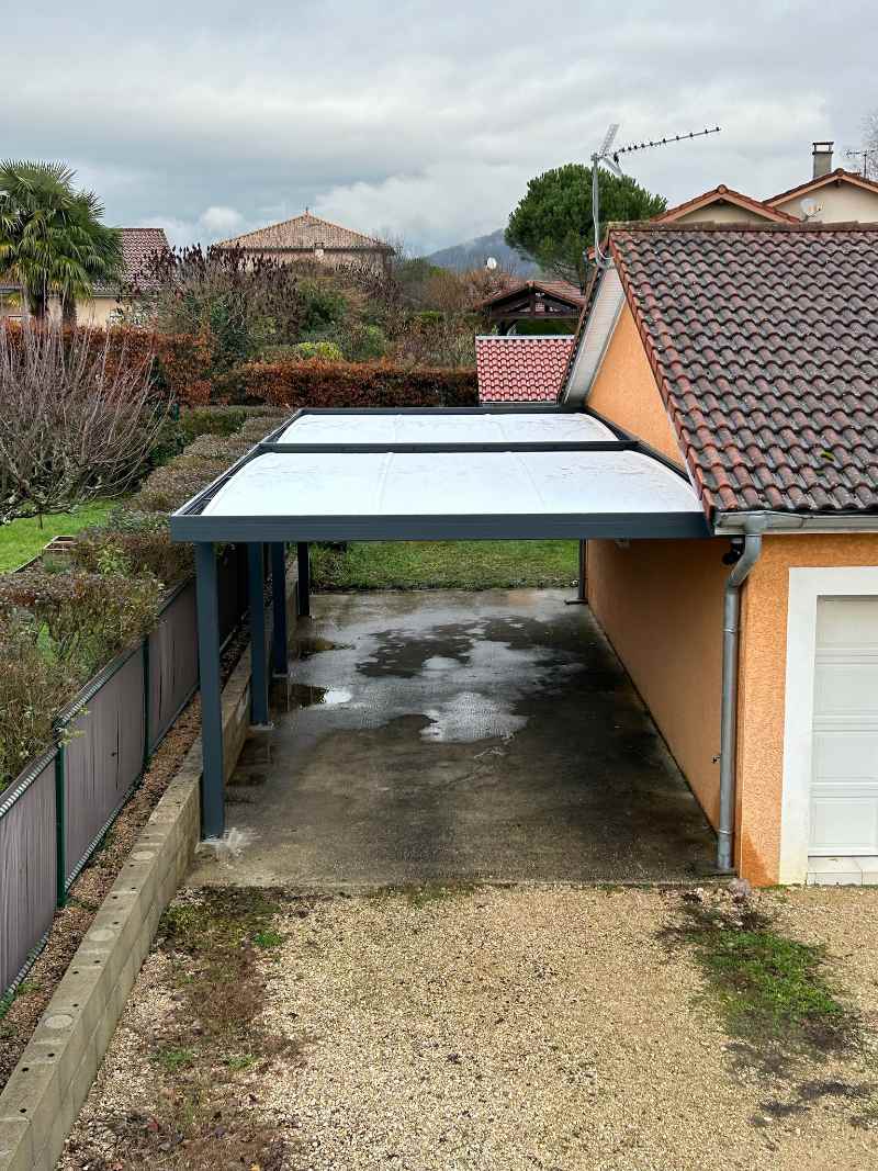 Carport Veranco modèle Jade installer dans l4ain par l’entreprise Heinrich de Saint Rémy