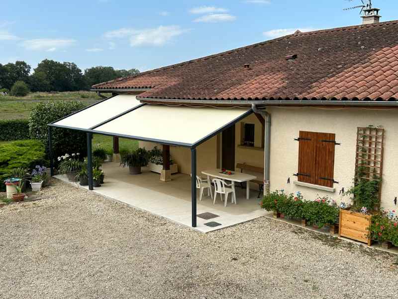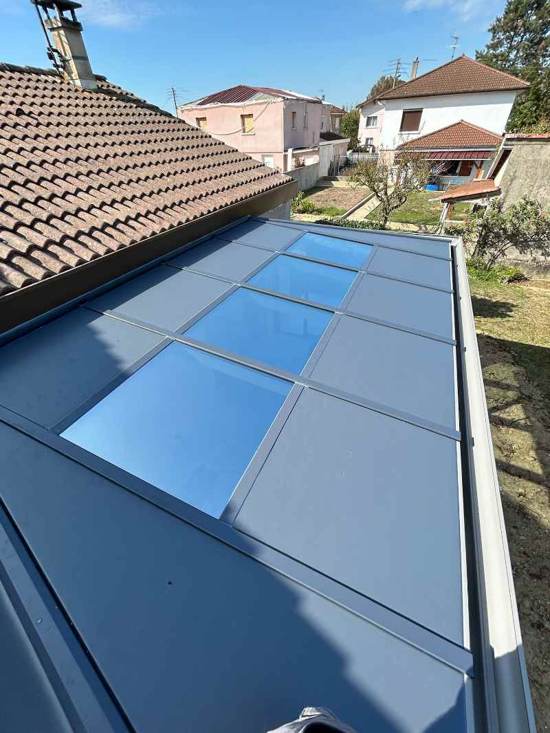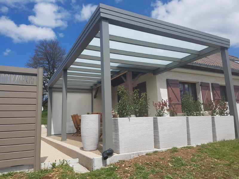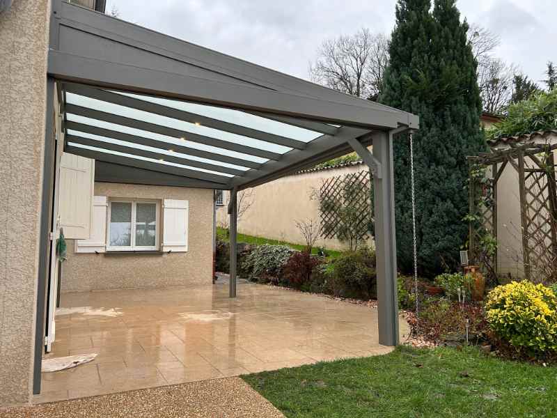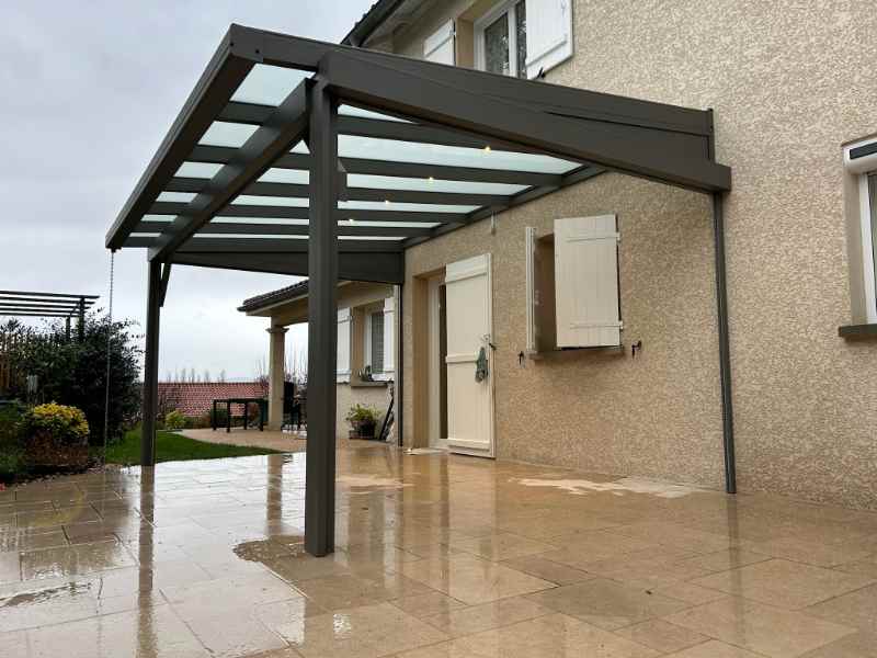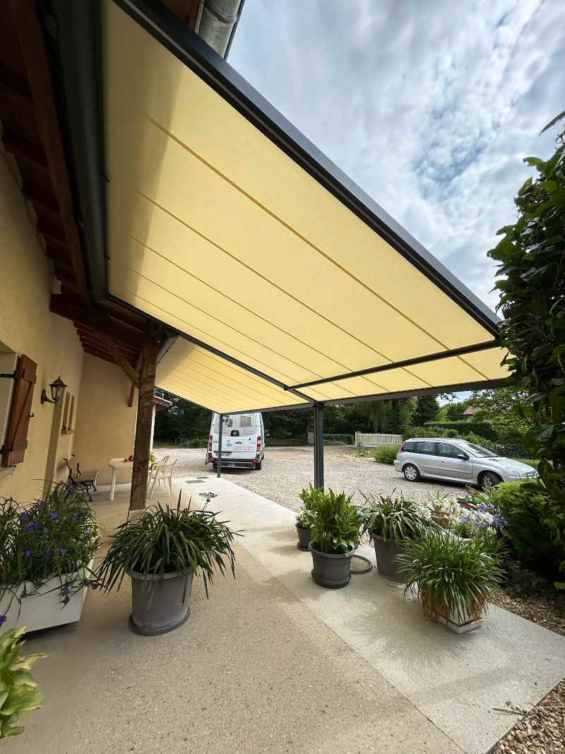 Réalisation d’un carport en aluminium pour camping-car contre une maison à Bourg-en-Bresse dans L’Ain par l’entreprise Heinrich