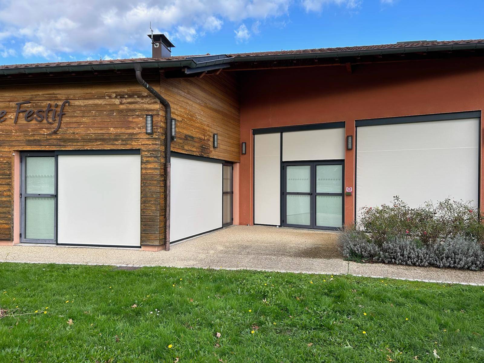 Toute l’équipe des Vérandas Heinrich est ravie d’être intervenue à la salle des fêtes d’Etrez dans l’Ain afin de réaliser l’installationde stores screens zippés extérieurs.