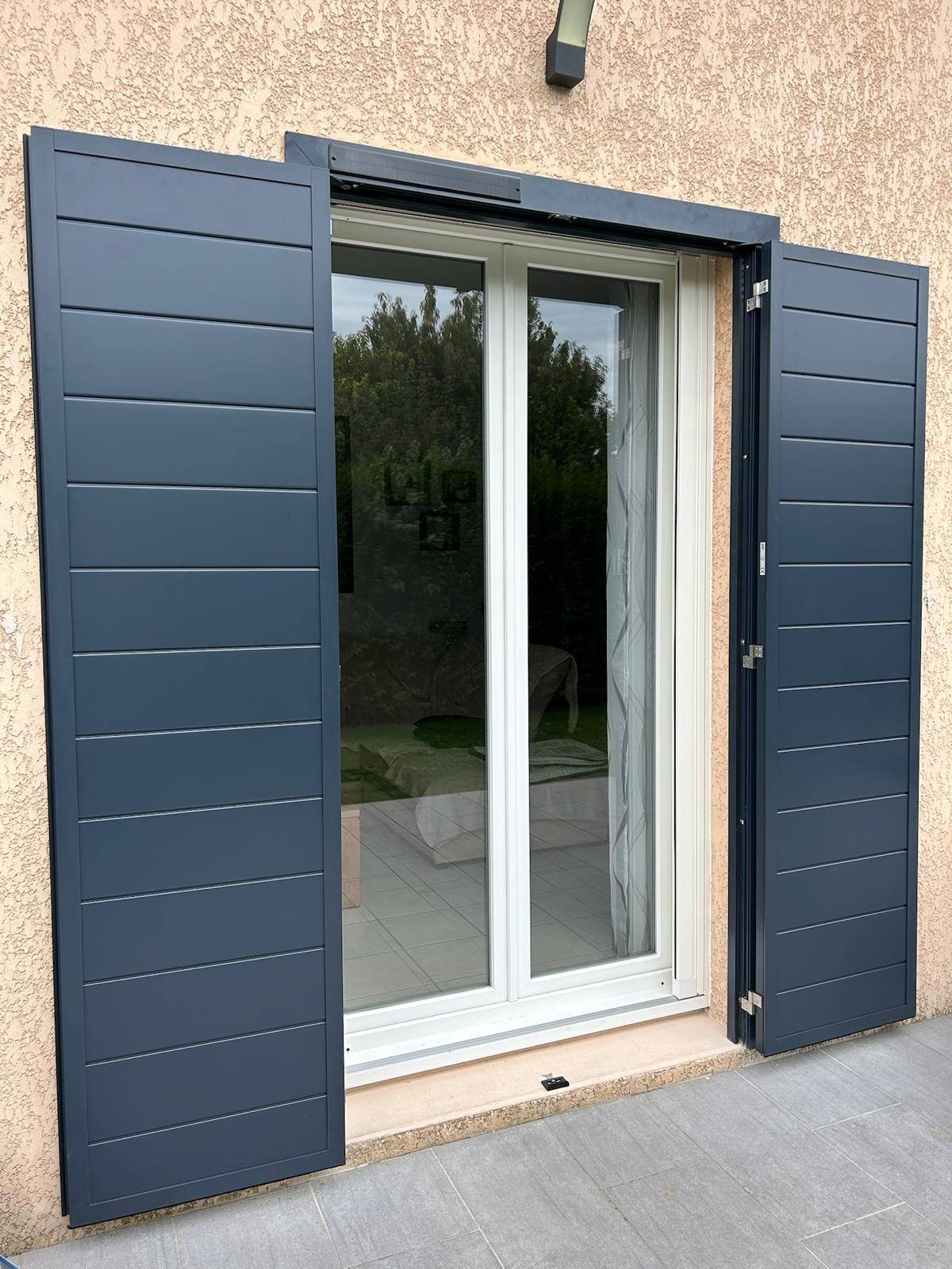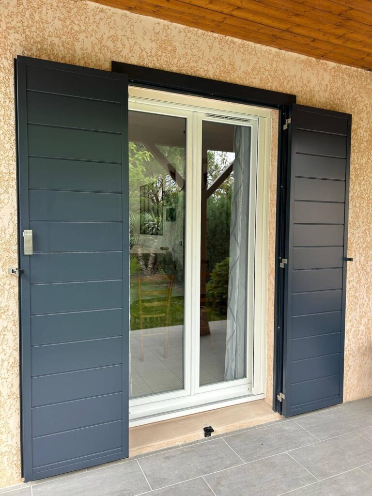 Après la dépose de leurs anciens volets, nous avons réalisé l’installation de volets battants aluminium de la marque SIB avec pré-cadre et motorisation solaire.