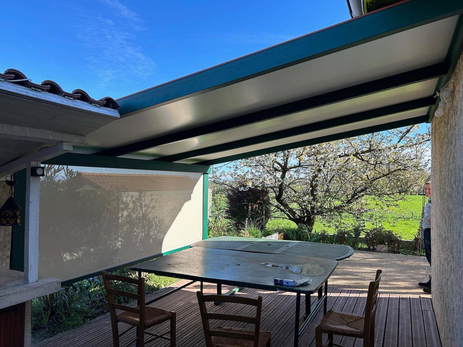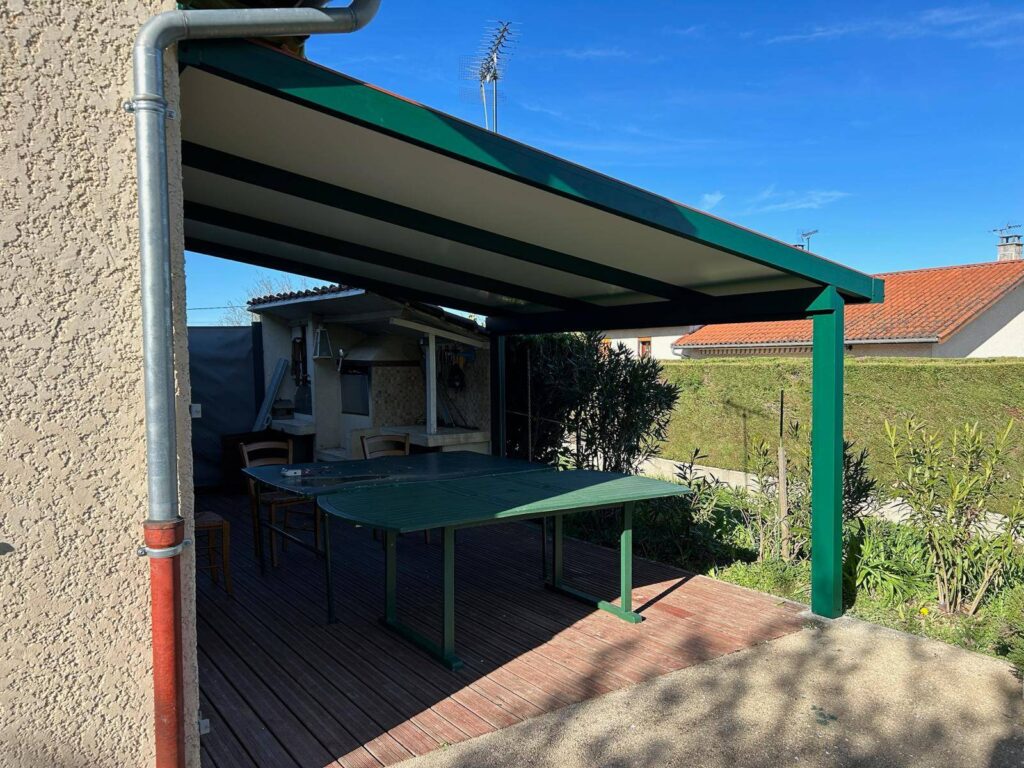 Quant à la couleur verte imposée pour s’intégrer parfaitement à l’environnement végétalisé de la maison ainsi qu’à la teinte des boiseries et volets existants, elle a été reproduite strictement à l’identique.