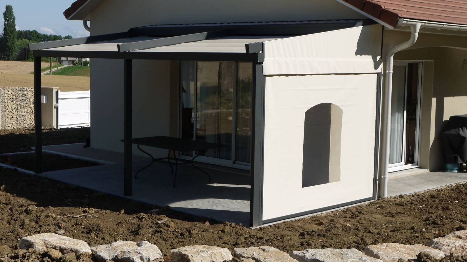 Grâce aux connaissances de l’Aluminium de Veranco, la pergola pergostore offre une haute résistance aux charges et au vent jusqu’à 90 Km/h. (testé en laboratoire)