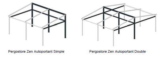 Ce système est capable de couvrir jusqu’à 84,50 m² avec une pente. Il est possible de rendre cette pergola autoportante et d’obtenir le double de surface couverte (169 m²) avec deux pentes accolées.