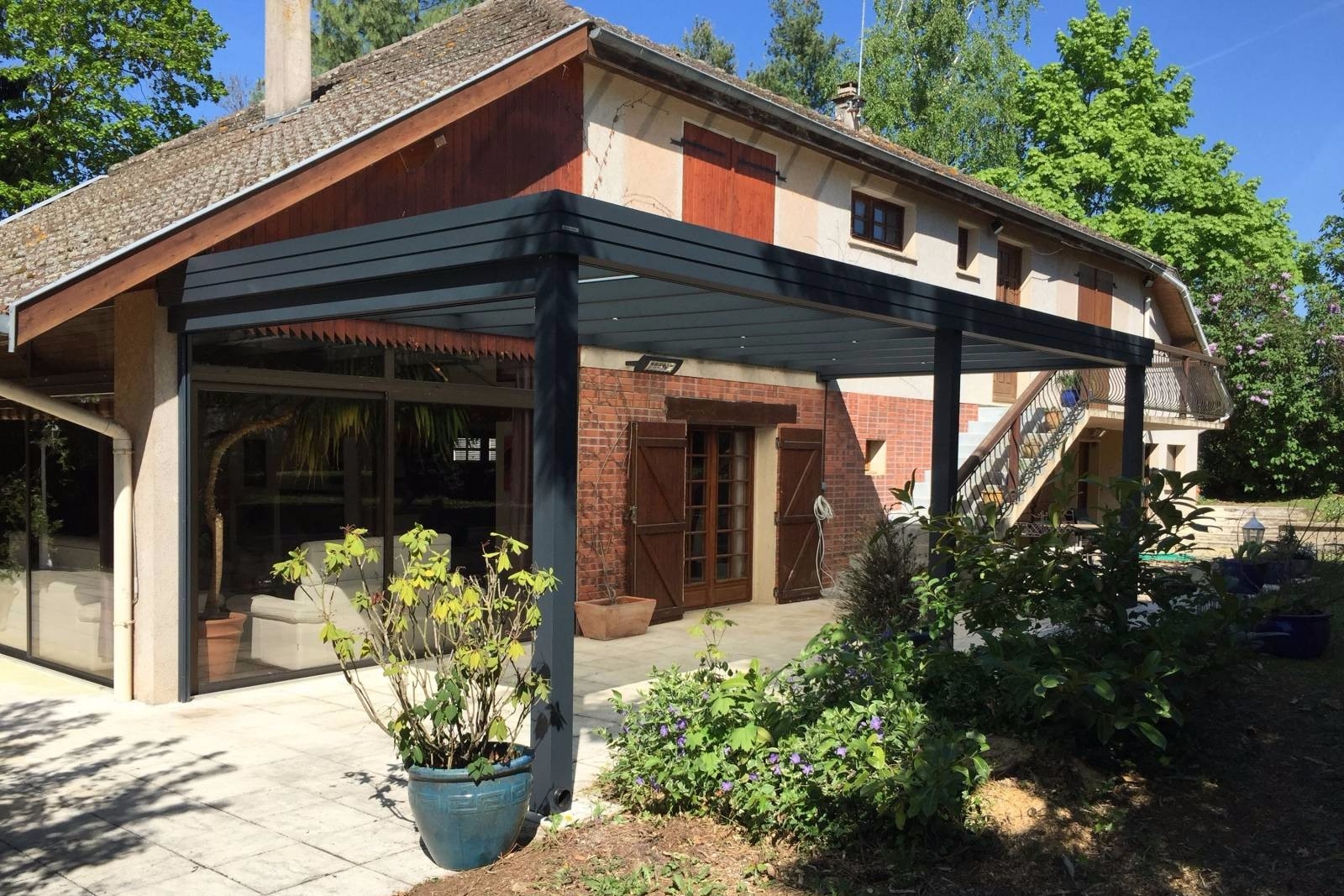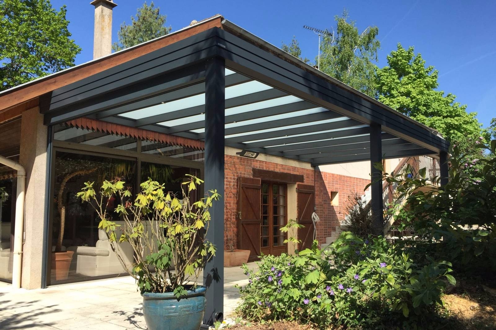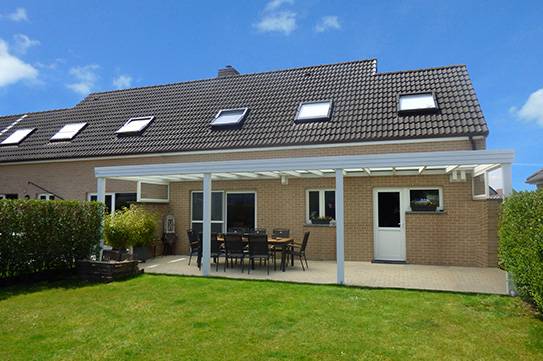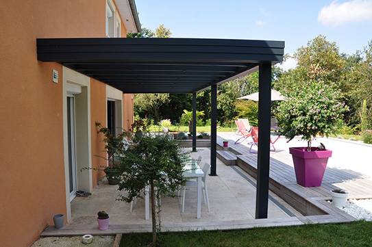 Sur la terrasse, adossée à la maison, elle offre un espace de vie convivial pour profiter pleinement de l’environnement. Sa structure aluminium renforcée résistera aux intempéries (vent, grêle, charge de neige) et abritera votre mobilier de jardin toute l’année.