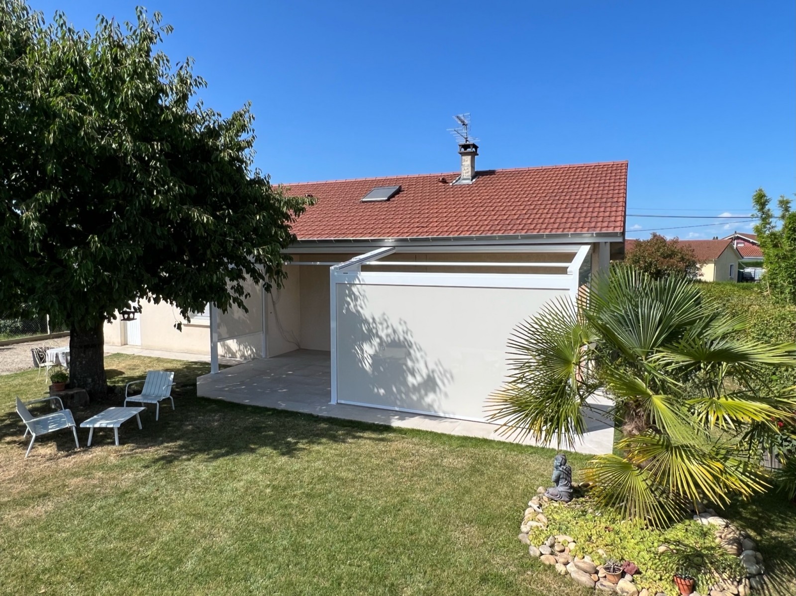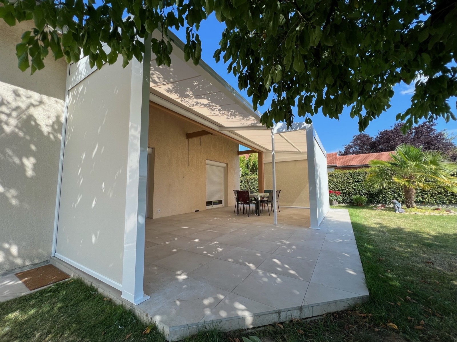 C’est pour celà que nous avons réalisé une très belle pergolas COCOON+ de notre partenaire VERANCO chez de nouveaux clients très heureux. Ils voulaient profiter plus souvent de leur terrasse, notamment les jours de vent et ont opté pour des stores verticaux sur les trois côtés de leur pergola.