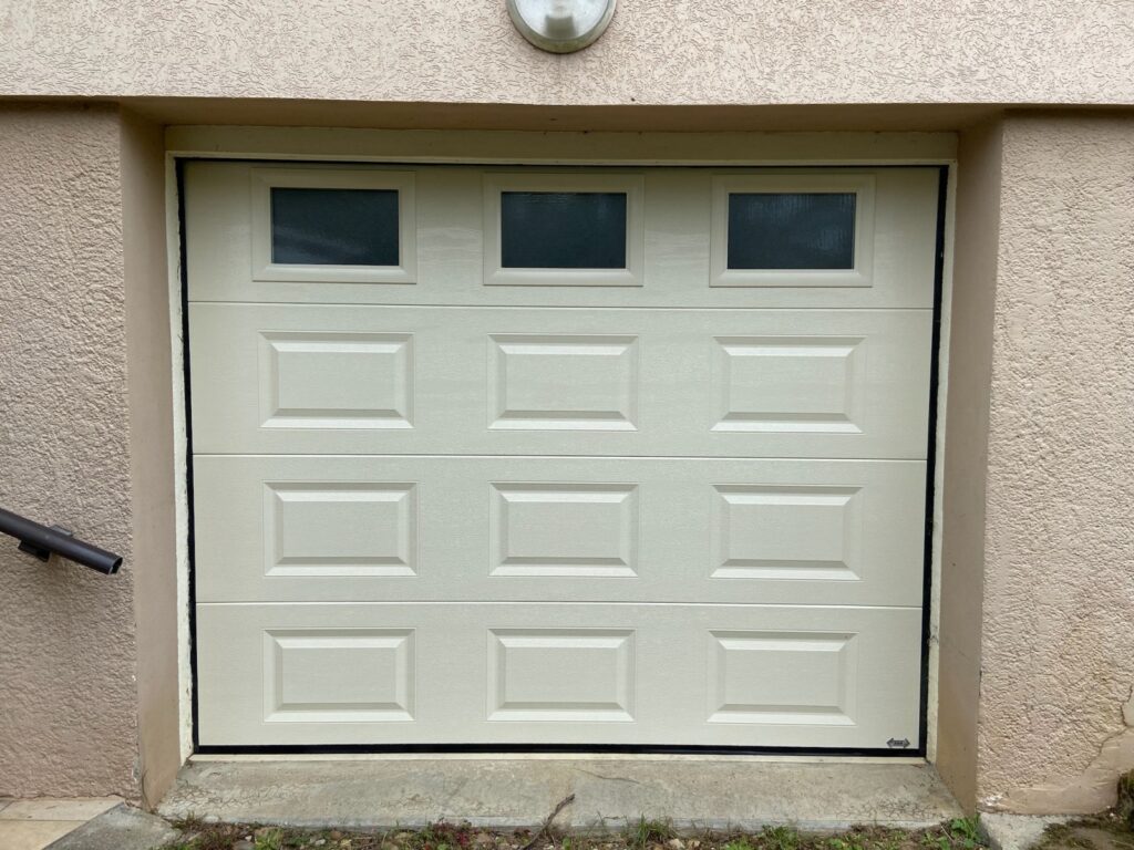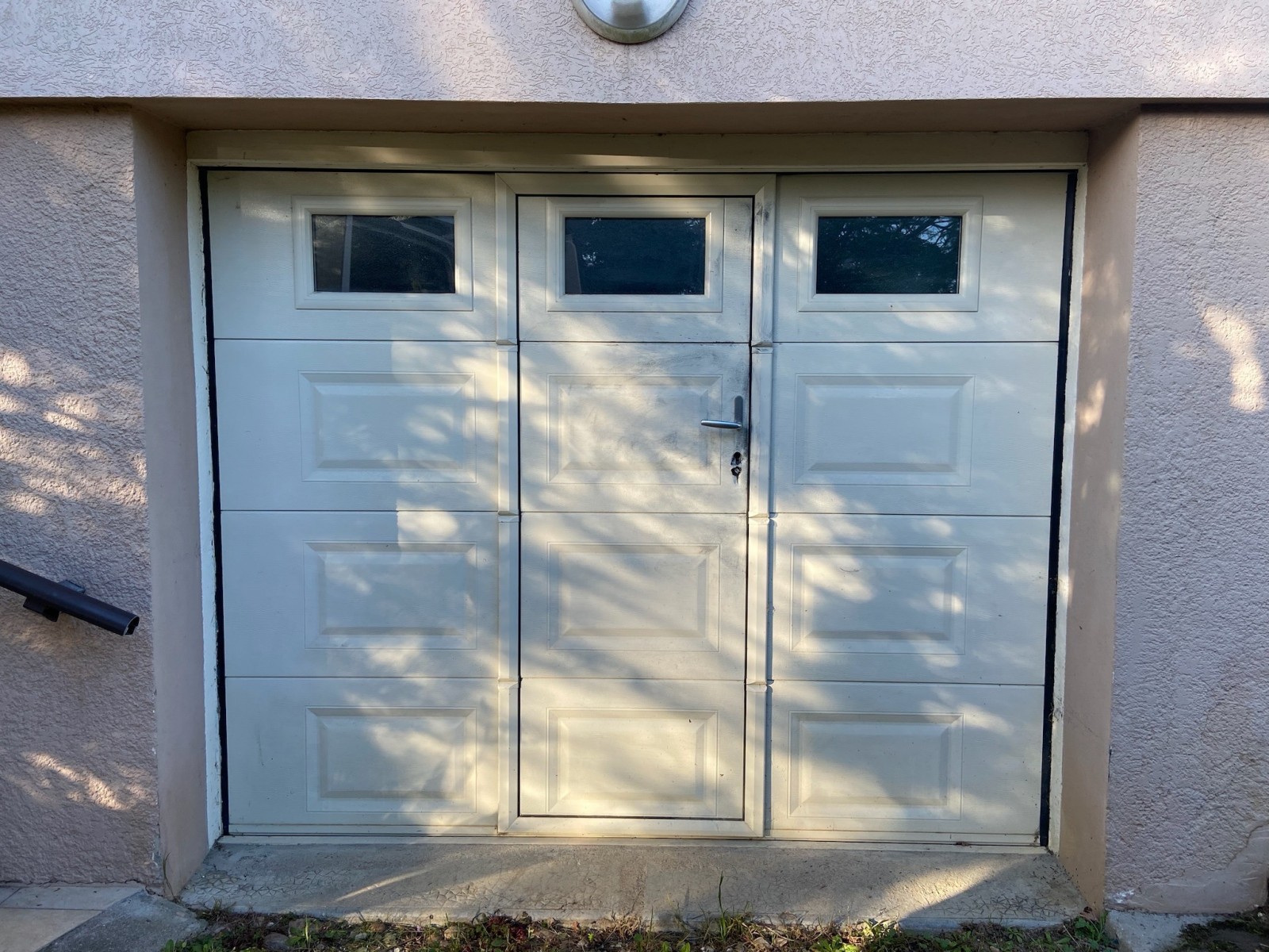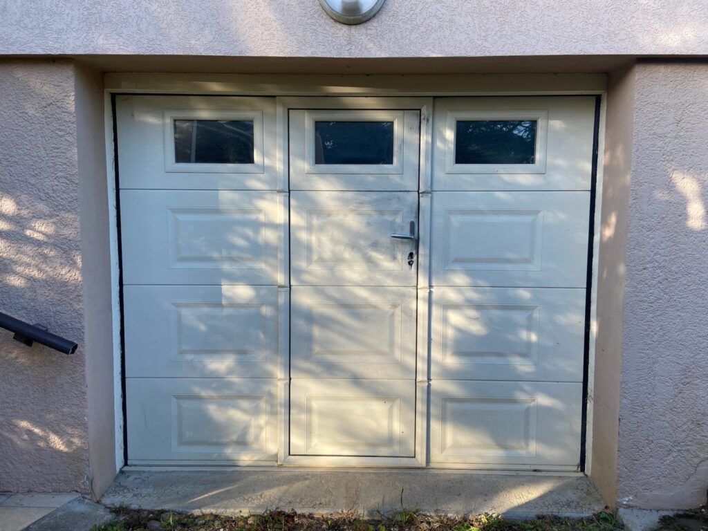 Notre client souhaitait supprimer le portillon de sa porte de garage tout en conservant l’esthétique de sa façade.