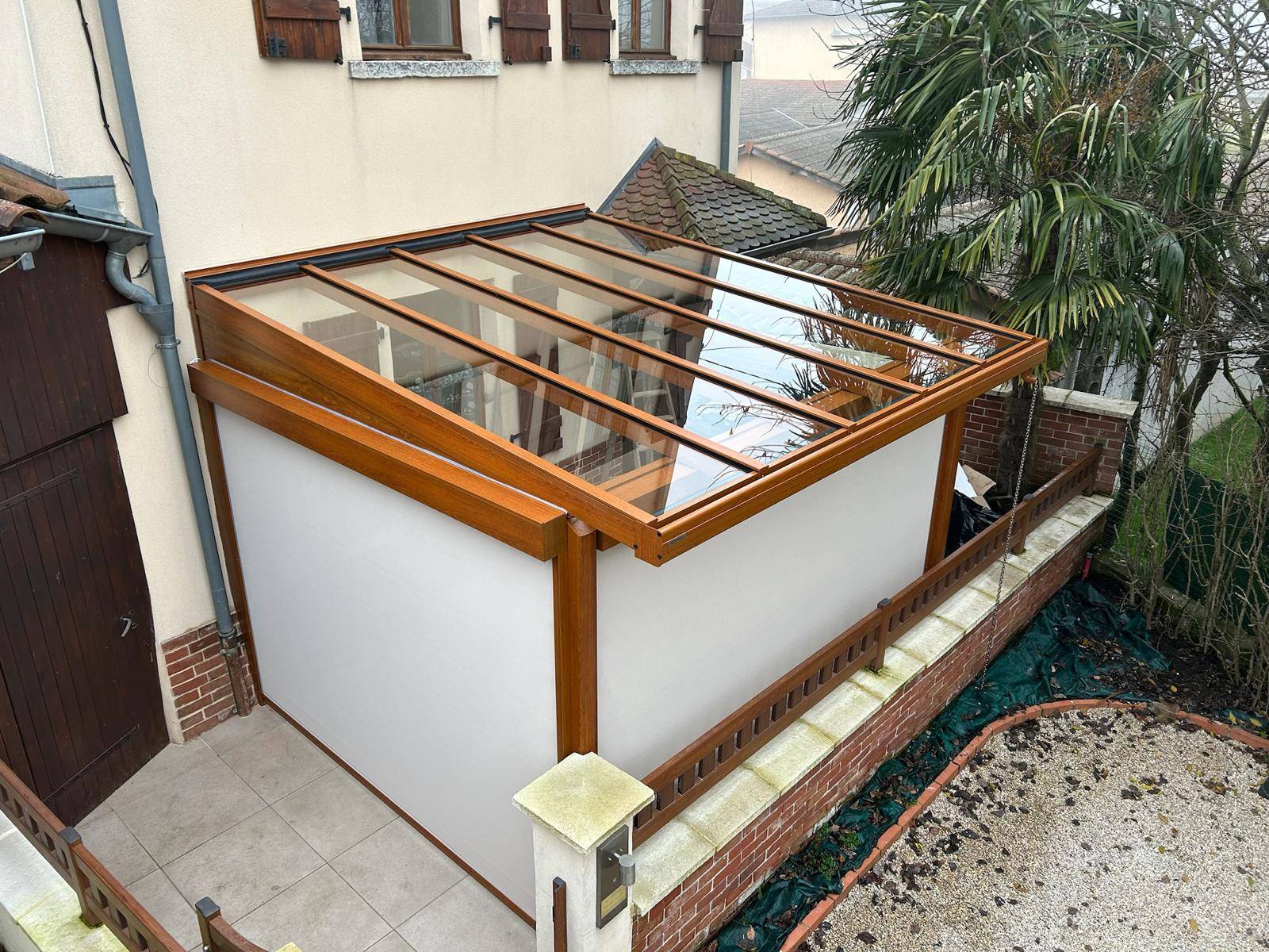 Conception et pose d’une véranda ONYX à très haute isolation thermique et avec une toiture plate à Viriat