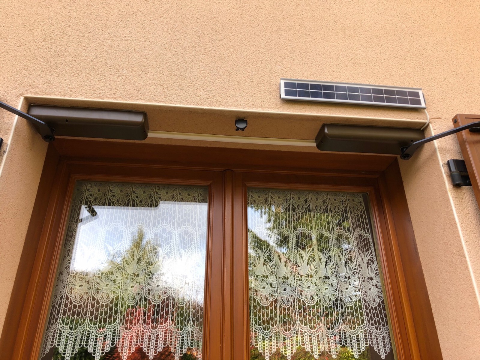 Motorisation de volets battants en bois, en alu ou en PVC près de Bourg-en-Bresse. Possibilité de les motoriser électriquement avec du courant en 230 V ou alors grâce au soleil avec une motorisation solaire. La motorisation solaire peut avoir un panneau solaire déporté afin de capter un maximum de soleil pour les batteries.